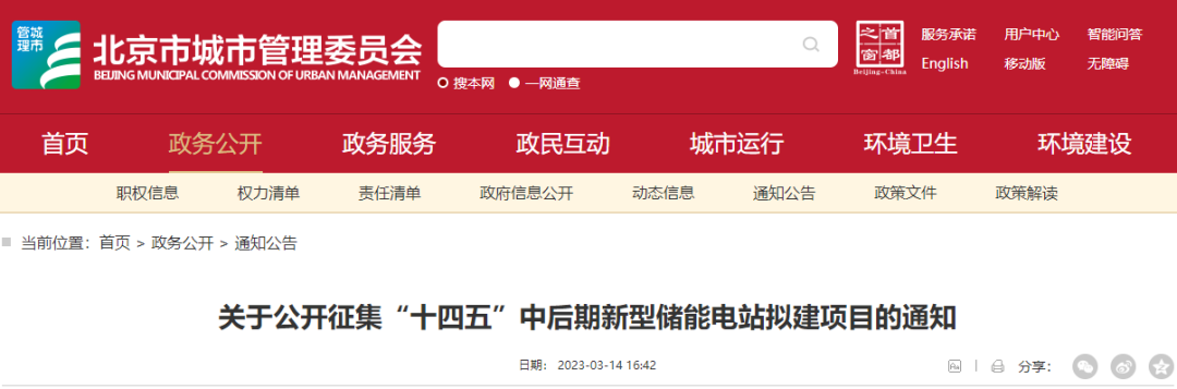 3月14日,北京市城市管理委员会发布《关于公开征集“十四五”中后期新型储能电站拟建项目的通知》(简称“通知”)。