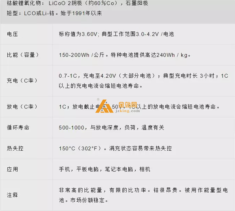 钴酸锂在高比能量方面表现出色, 但在功率特性、 安全性和循环寿命方面只能提供一般的 性能表现