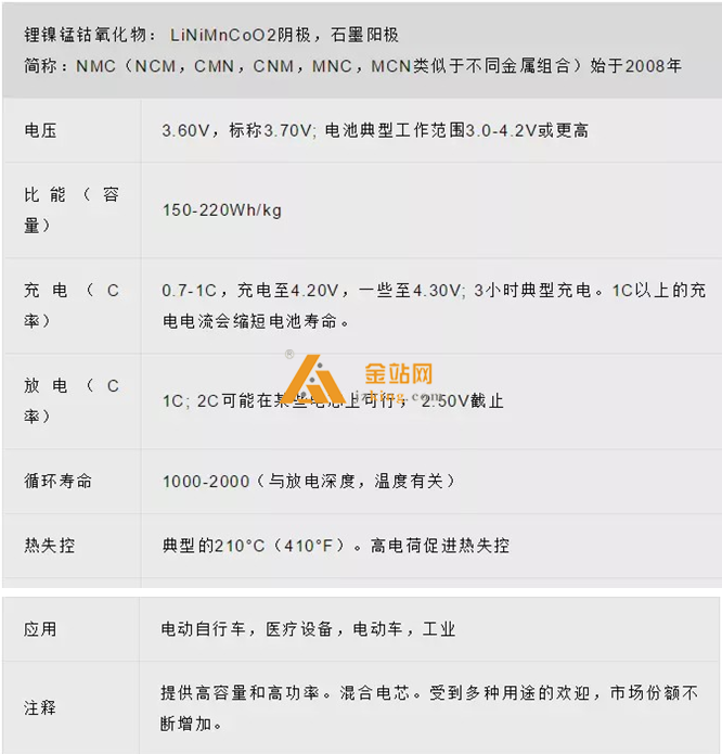NMC具有良好的整体性能, 并且在比能量方面表现出色。 这种电池是电动车的首选, 具 有最低的自热率