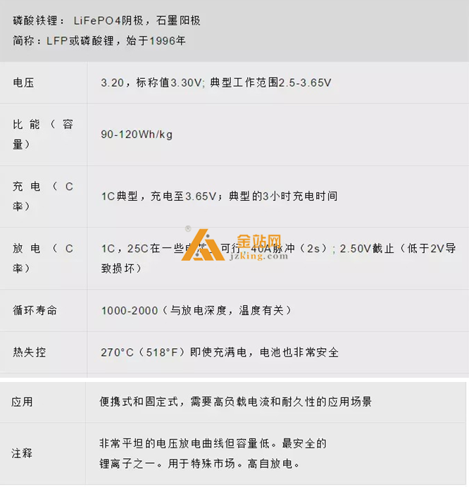 磷酸锂具有良好的安全性和长寿命, 比能量适中, 自放电能力增强。