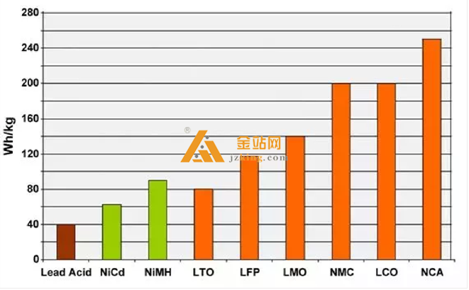 NCA享有最高的比能量; 然而, 锰酸锂和磷酸铁锂在比功率和热稳定性方面优越。 钛酸锂具 有最好的使用寿命。