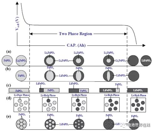 图4 LFP材料电压曲线及相变过程示意图