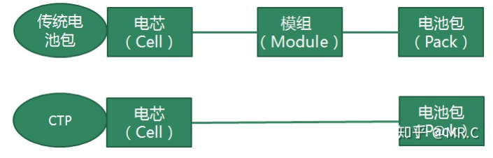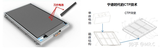 一般电池不仅最外部有电池包,内部还有一组一组电芯形成的“模组”,所谓CTP就是无模组化,电芯直接打包,目前是企业提高能量密度的一个主要选择。宁德时代、比亚迪、蜂巢能源均推出了无模组电池包技术。前一阵子比较火爆的比亚迪刀片电池就是基于磷酸铁锂电池,采用无模组设计提高了空间利用率。