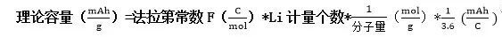 1、电极材料的理论容量电极材料理论容量,即假定材料中锂离子全部参与电化学反应所能够提供的容量,其值通过下式计算: