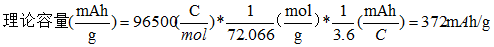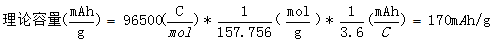 这些计算值是理论的克容量,为保证材料结构可逆,实际锂离子脱嵌系数小于1,实际的材料的克容量为:材料实际克容量=锂离子脱嵌系数 × 理论容量