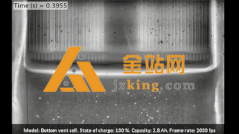 相关研究显示热失控一旦发生,热失控可能会在2s之内蔓延到整个18650电池,因此为了能够更好的观察整个热失控过程,需要每秒为18650电池拍摄1000张以上的X光照片,而电池的爆炸时间小于0.01s,这就需要更高的拍摄速度。为了满足这一苛刻的要求,Donal P. Finegan采用欧洲同步辐射实验室的设备对18650电池防爆阀的动作过程进行了拍摄,该设备曾经对保险丝的熔断起弧过程进行了拍摄,其分辨率达到了每秒钟百万次拍摄的级别。