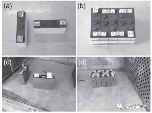图1 商业化磷酸铁锂电池(a)单体和(b)模块;商业化三元电池(a)单体和(b)模块