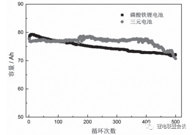 图2 商业化磷酸铁锂电池和三元电池单体的循环寿命测试结果