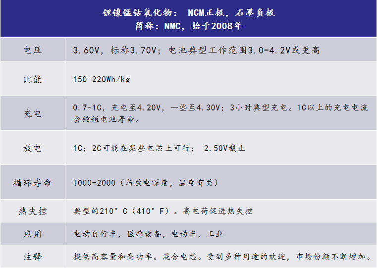 由于该体系经济性和综合性能表现均比较好,因此NMC混合锂离子电池越来越受到重视。镍,锰和钴三种活性材料可轻松混合,以适应需要频繁循环的汽车和能源存储系统的广泛应用。NMC家族的多样性正在增长。