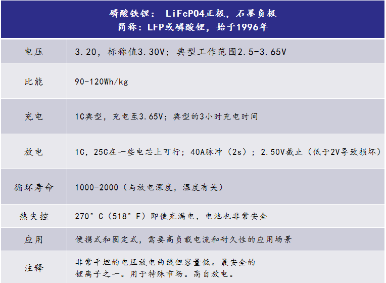 表8 磷酸铁锂的特性