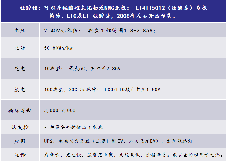 表12 钛酸锂的特性
