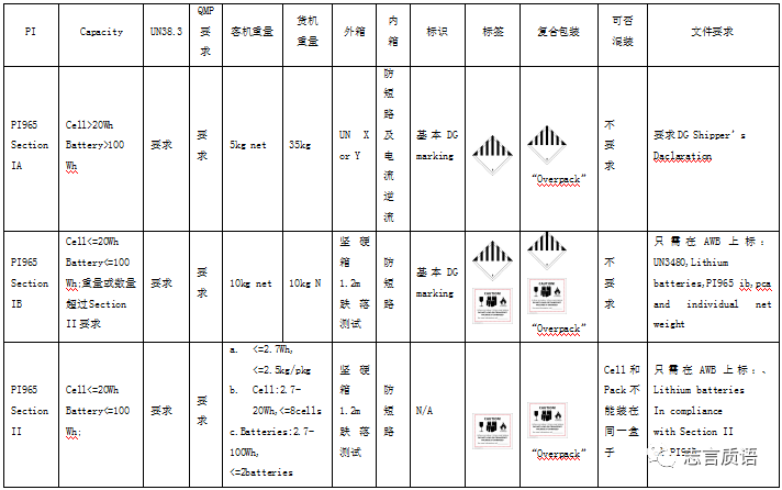 2-Section II标准:功率<=2.7Wh,每箱重量<=2.5kg(电芯或电池组);功率2.7<功